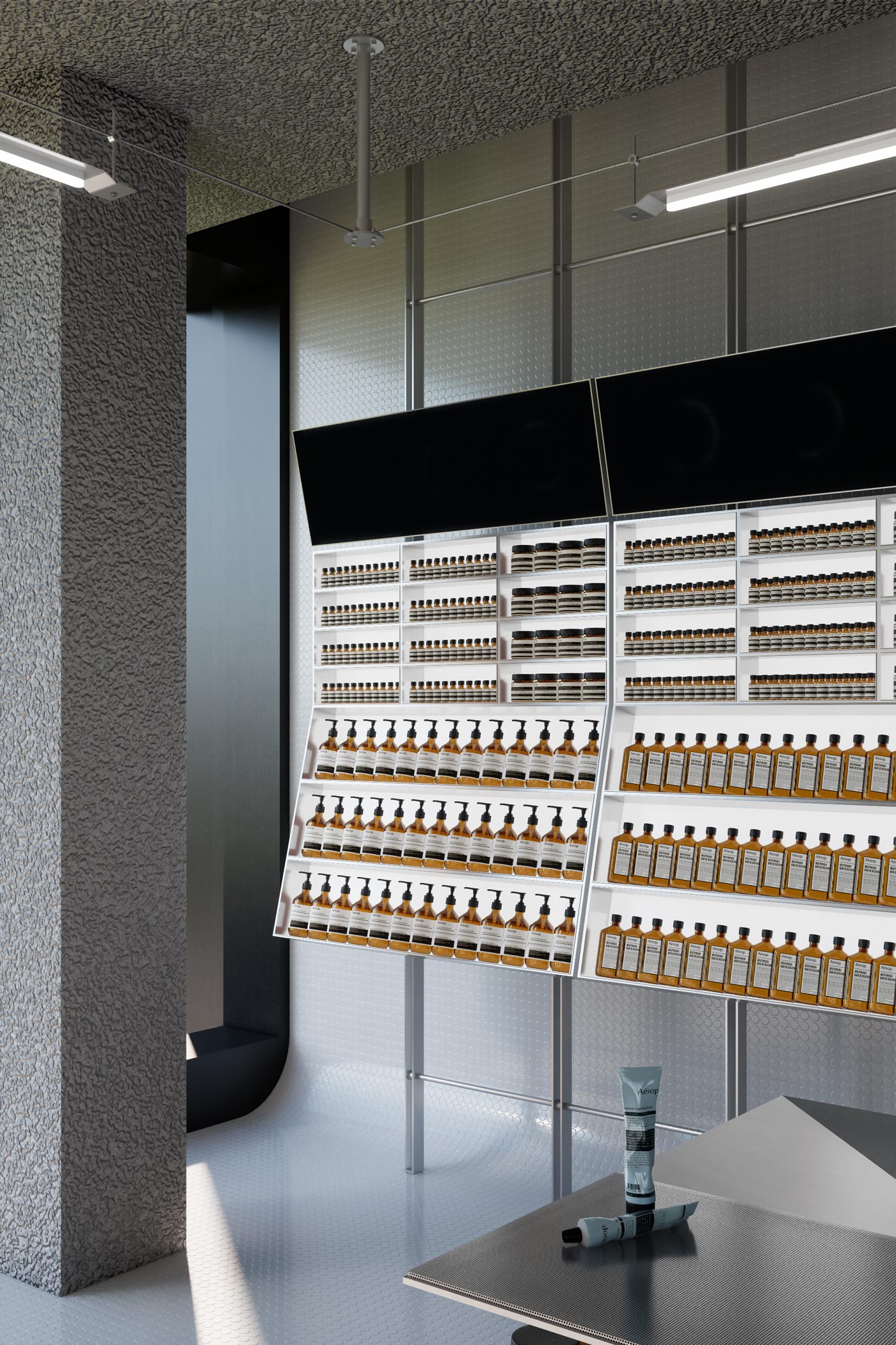 Conceived for Aesop on Flinders Lane, Radiomatique presents a retail environment in which music and skincare converge to enrich both body and mind. The store is imagined as a sonic sanctuary—an immersive setting that extends Aesop’s sensorial philosophy beyond the tactile and olfactory into the auditory realm.