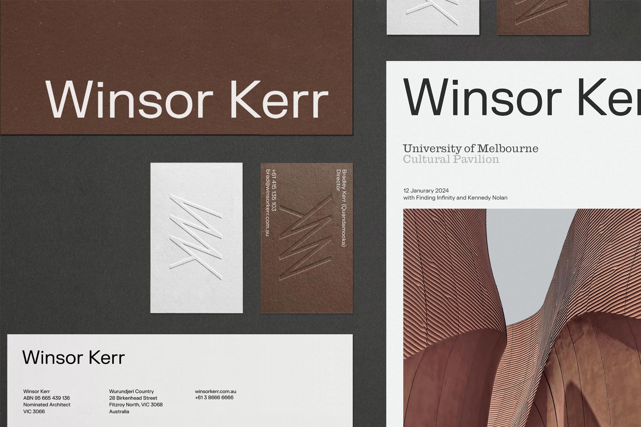 The brand identity for Winsor Kerr is grounded in authorship and partnership. As a small practice, the studio’s public presence is a direct extension of its leadership, and the identity reflects this intimacy—drawing from the shared values, relationships, and cultural context that define the practice.